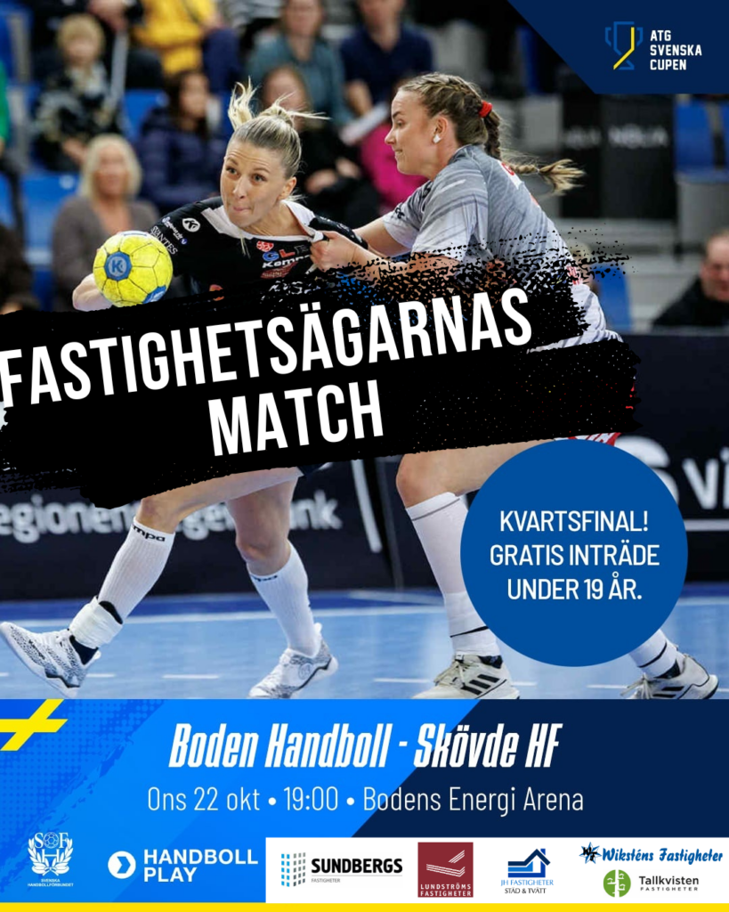 Vi bjuder samtliga hyresgäster (2st biljetter/lägenhet) på fastighetsägarnas match – Boden hockey vs. Piteå. Lördagen den 21/1. Matchstart 16:00.